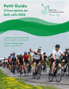 Notre Défi-vélo célèbre cette année sa 20ᵉ édition ! Cet événement sportif et solidaire réunit chaque année des cyclistes de partout au Québec autour d’un objectif commun : parcourir 300 km en deux jours, ou 150 km en une journée, en solo ou en équipe.